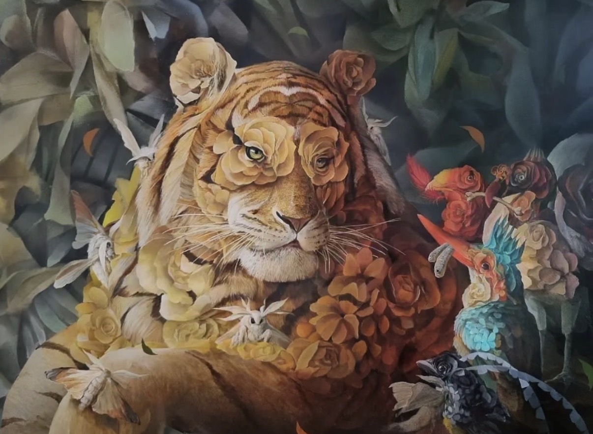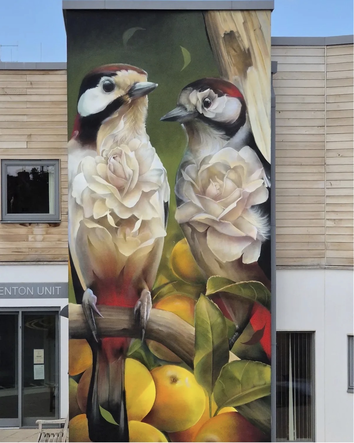Curtis creates highly detailed large-scale murals distinguished by their striking fusion of flora and fauna inspired by birdlife, native species, and the ecosystems of the places where he paints. His practice is deeply rooted in a lifelong connection to the natural world, shaped by a childhood spent around woodland environments. Through this approach, he highlights biodiversity and encourages a deeper, more thoughtful relationship between people and nature. Curtis also draws inspiration from a deep appreciation for the still-life tradition of the Dutch Masters.