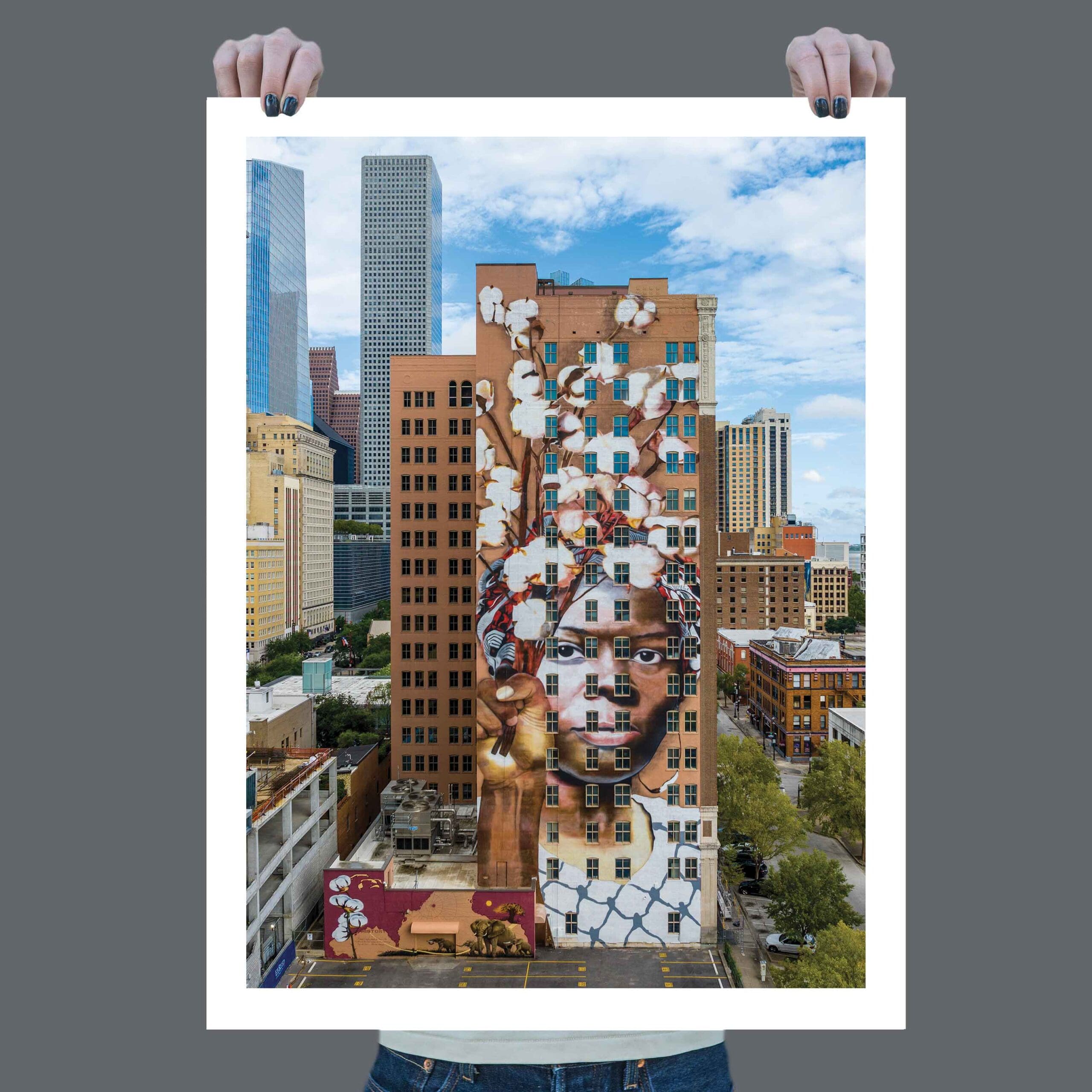 Interactive Signed Fine Art Print featuring the “Harriet Tubman” mural created by artist Victor Ash in Houston, Texas.